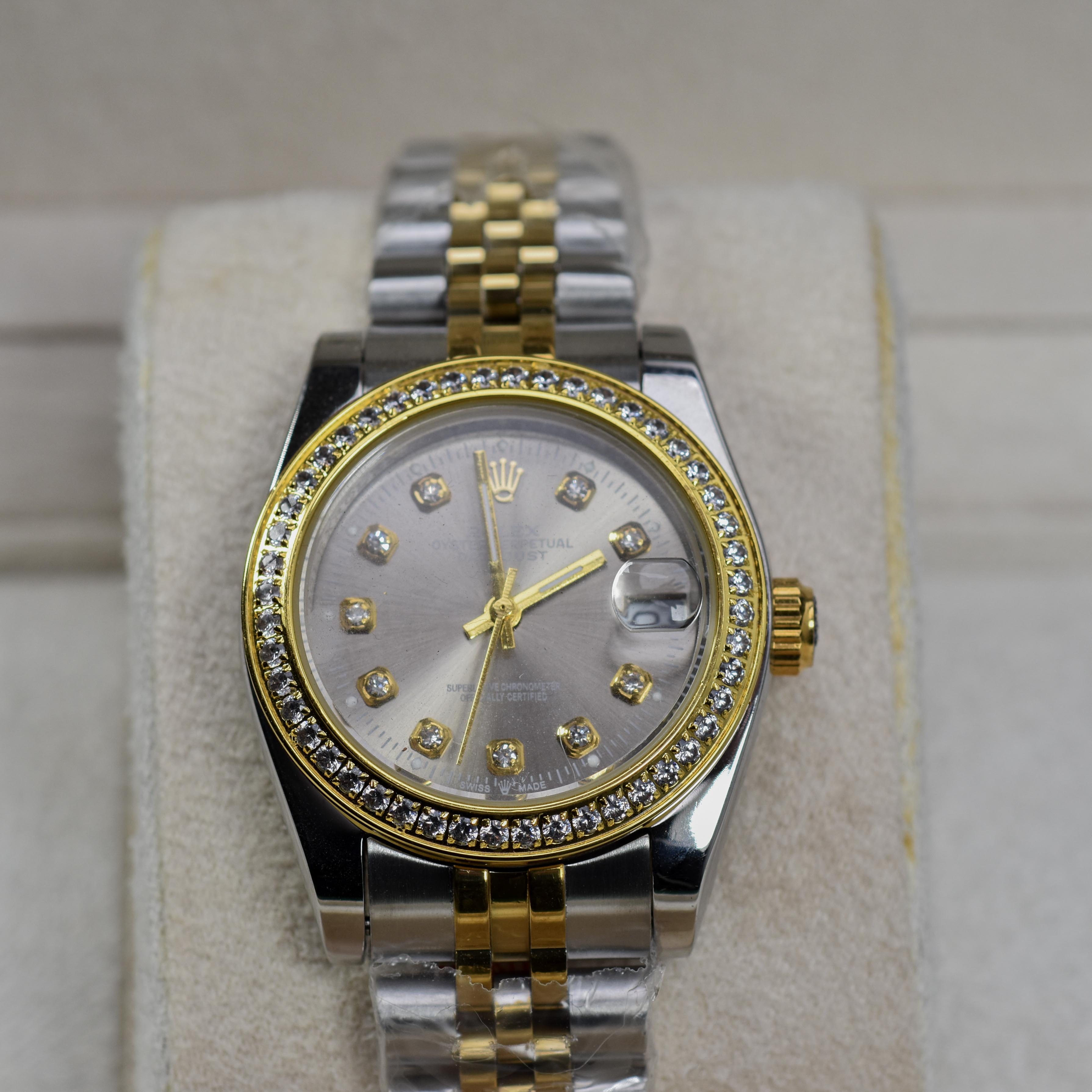 الشركة المصنعة: رولكس السلسلة: ليدي ديت جست 28 النوع: ساعة نسائية، ساعة رسمية القطر: 28.00 ملم الحالة: فولاذ مصقول/مصقول العلبة الخلفية الخلفية: صلبة السوار: فولاذ مصقول ومصقول، ذهب أصفر عيار 18 قيراط الاتصال الهاتفي: عرق اللؤلؤ الأبيض مع الماس وعلامات الفهرس الإبزيم: مشبك قابل للطي مصنوع من الفولاذ الزجاج: كريستال ياقوتي مقاوم للخدش