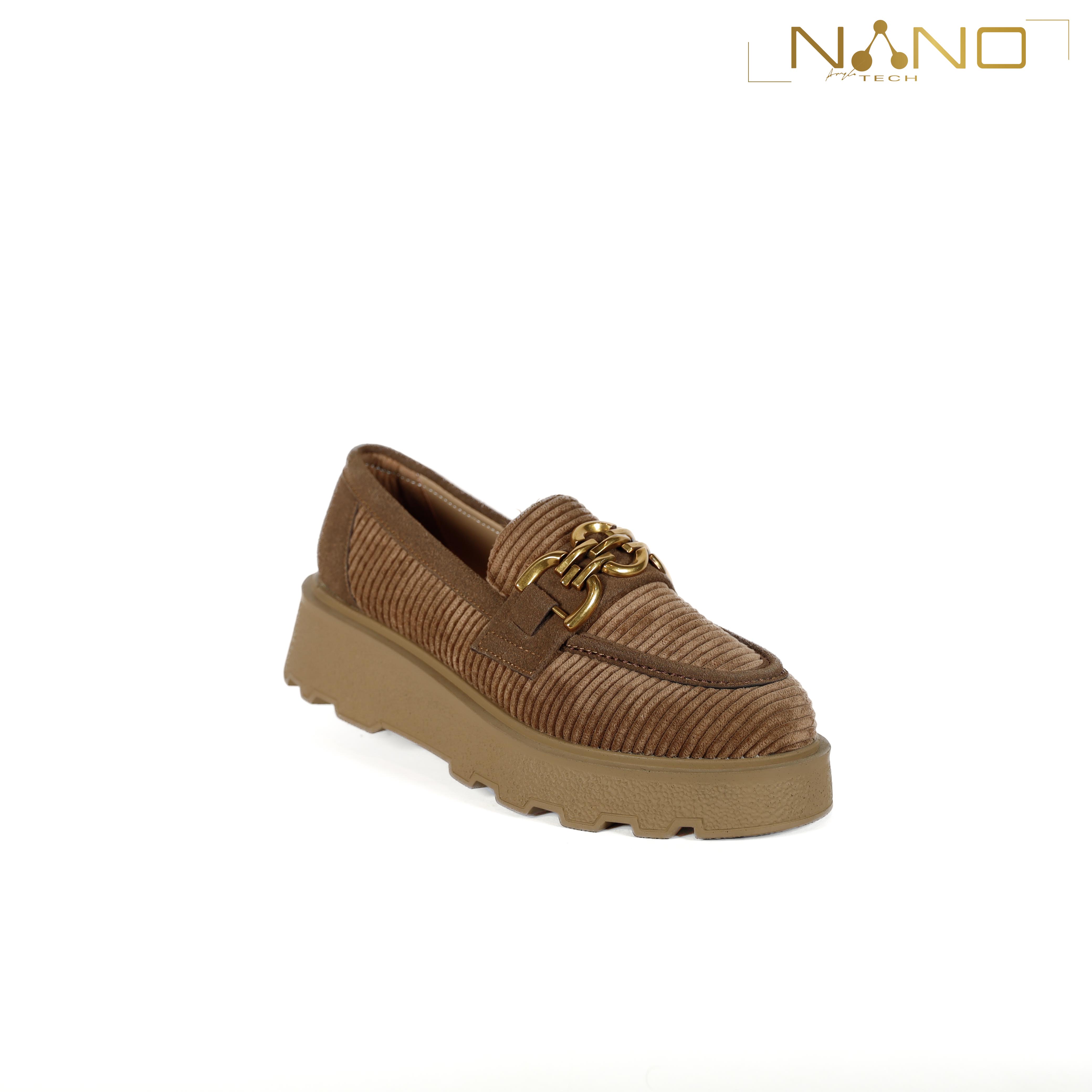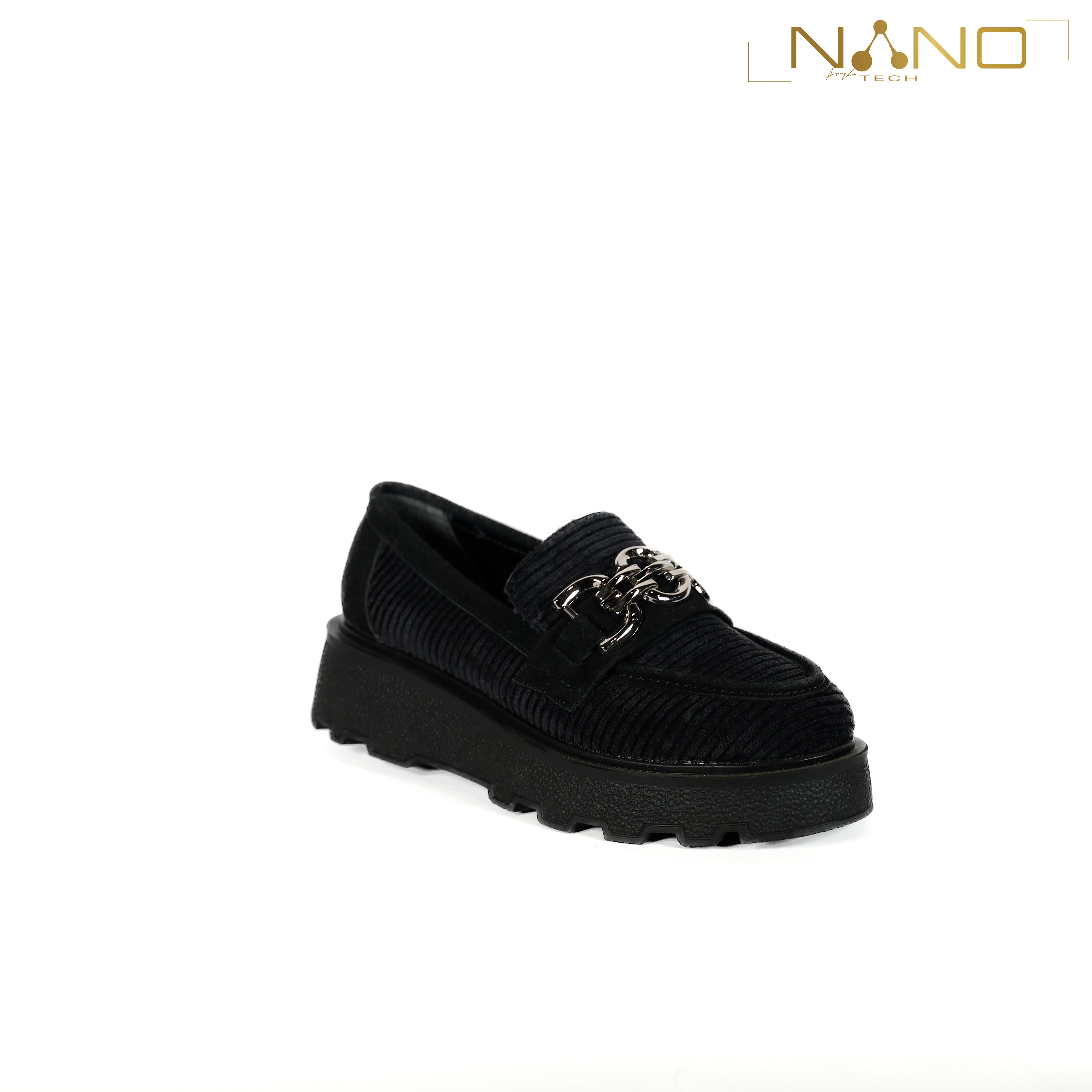 نقدم حذاء "سبور شيك" نسائي مصنوع من المخمل عالي الجودة مع إكسسوار ذهبي وبتصميم عصري يناسب كافة الأوقات يتميز بأناقته وقدرته على التناسق مع العديد من الملابس الأخرى.