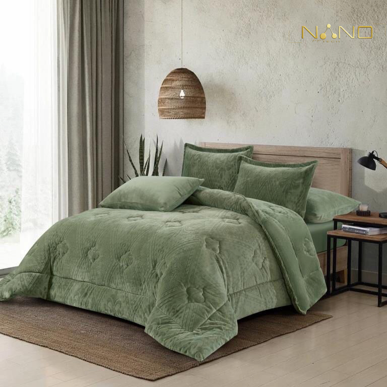 "استمتع براحة لا مثيل لها مع طقم لحاف سرير مزدوج فاخر، يتضمن لحاف واحد، وملاءة سرير واحدة، مزودة بأربع وجوه. يتم صنع هذا الطقم بأناقة تركية فاخرة من المخمل الناعم، ويوفر لك حلاً كاملاً لمفروشات السرير. اغمر نفسك في النعومة والفخامة التي يوفرها اللحاف، واستمتع بالراحة التي توفرها ملاءة السرير، وامنح نفسك الدعم اللازم مع الأربع وسائد المزودة بأربع وجوه. أضف لمسة من الأناقة والراحة إلى غرفة نومك بهذا الطقم الذي يجمع بين الأداء والجمال.